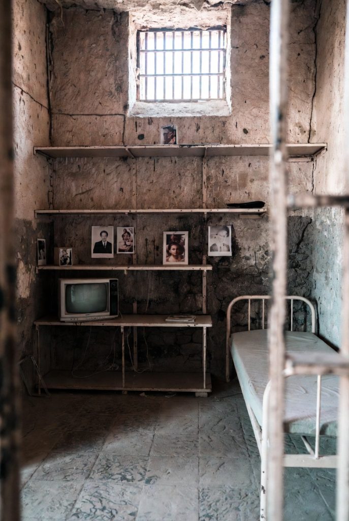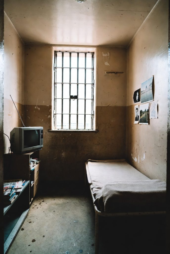 Hassle’s cell was the last one on the left. It was bigger than the others, and it had a small teevee, a chair and personal photos, clothes and shelves all over. The other cells were unfurnished except for a toilet and sink.